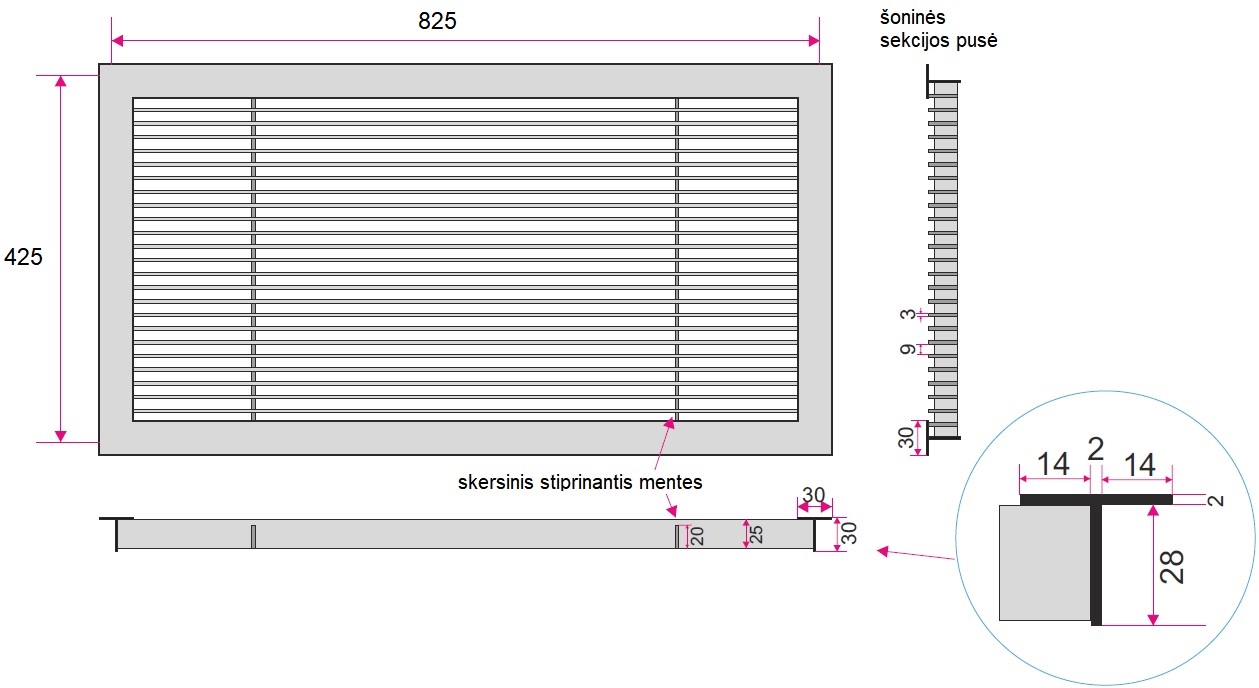 ALWP-1/t/825x425/W1 Montavimo angos matmenys 825x425 mm