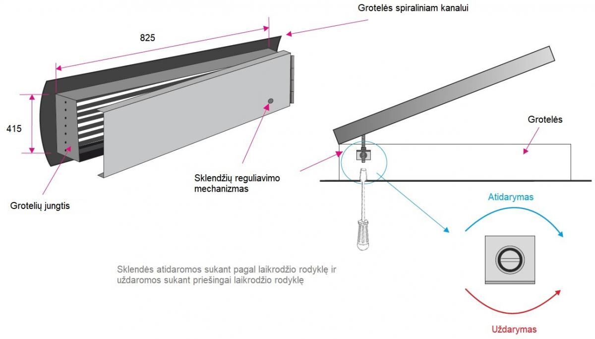 GU/825x125 Montavimo angos matmenys 825x125 mm, sklendės matmenys 815x115 mm