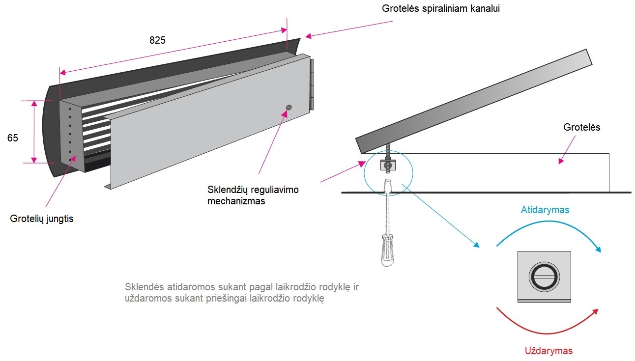 Montavimo angos matmenys 825x75 mm, sklendės matmenys 815x65 mm
