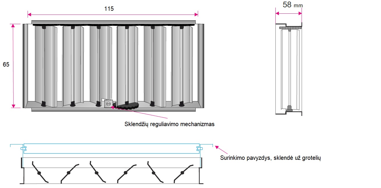 Montavimo angos matmenys 1225x75 mm, oro tekėjimo angos matmenys 1215x65 mm