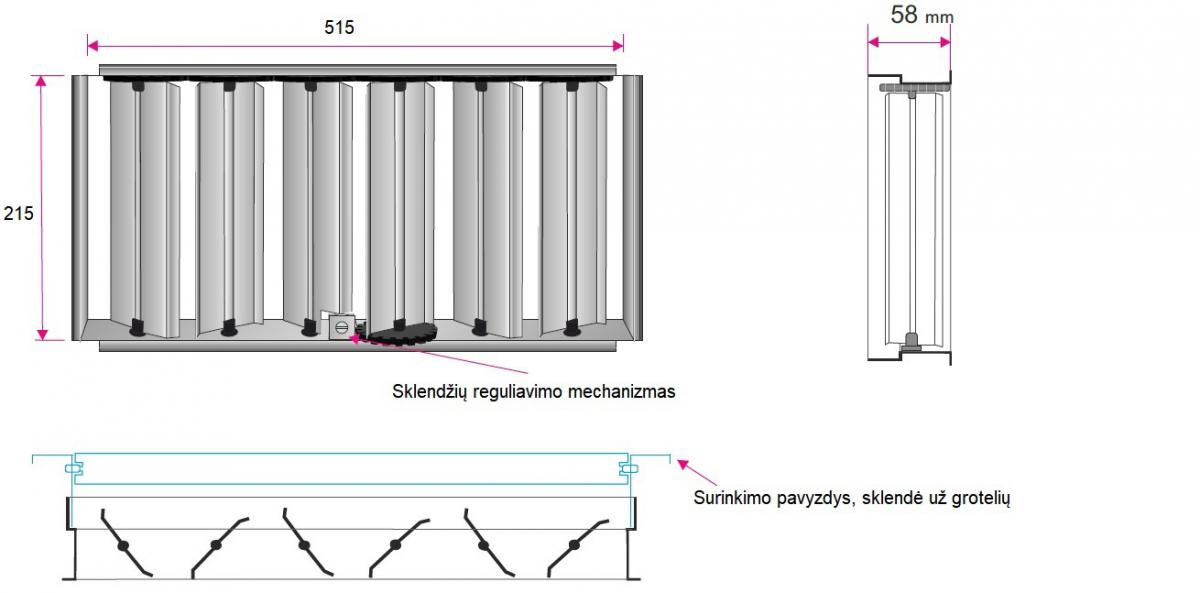 Montavimo angos matmenys 525x75 mm, oro tekėjimo angos matmenys 515x65 mm