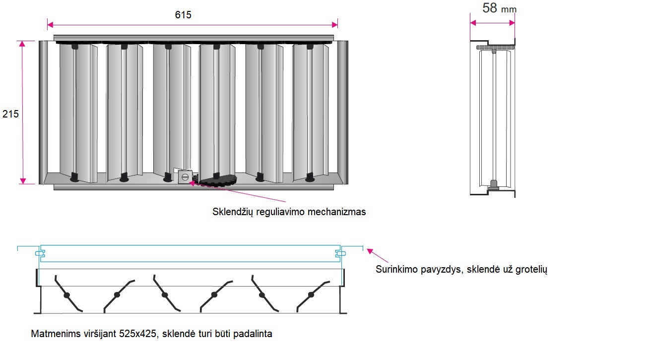 Montavimo angos matmenys 625x75 mm, oro tekėjimo angos matmenys 615x65 mm