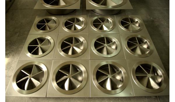 Difuzoriai pagaminti iš cinkuoto lakštinio plieno, apdoroto baltos spalvos 9016 milteline danga arba kita RAL paletės spalvos danga pagal kliento pageidavimą. Kliento pageidavimu difuzoriai gali būti gaminami ir iš nerūdijančio plieno.