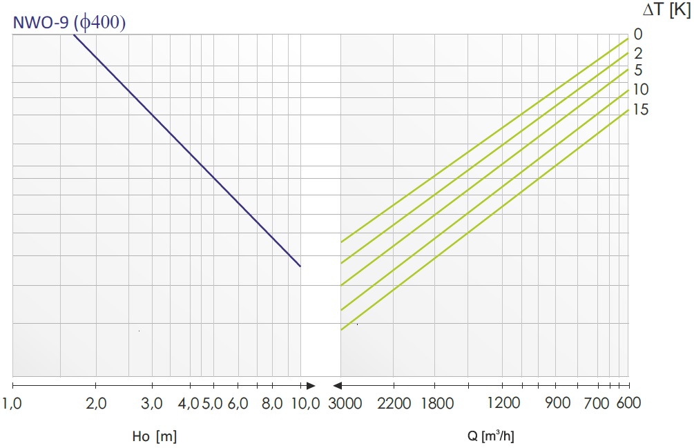 ΔT [K] - tiekiamo oro ir patalpos temperaturu skirtumas