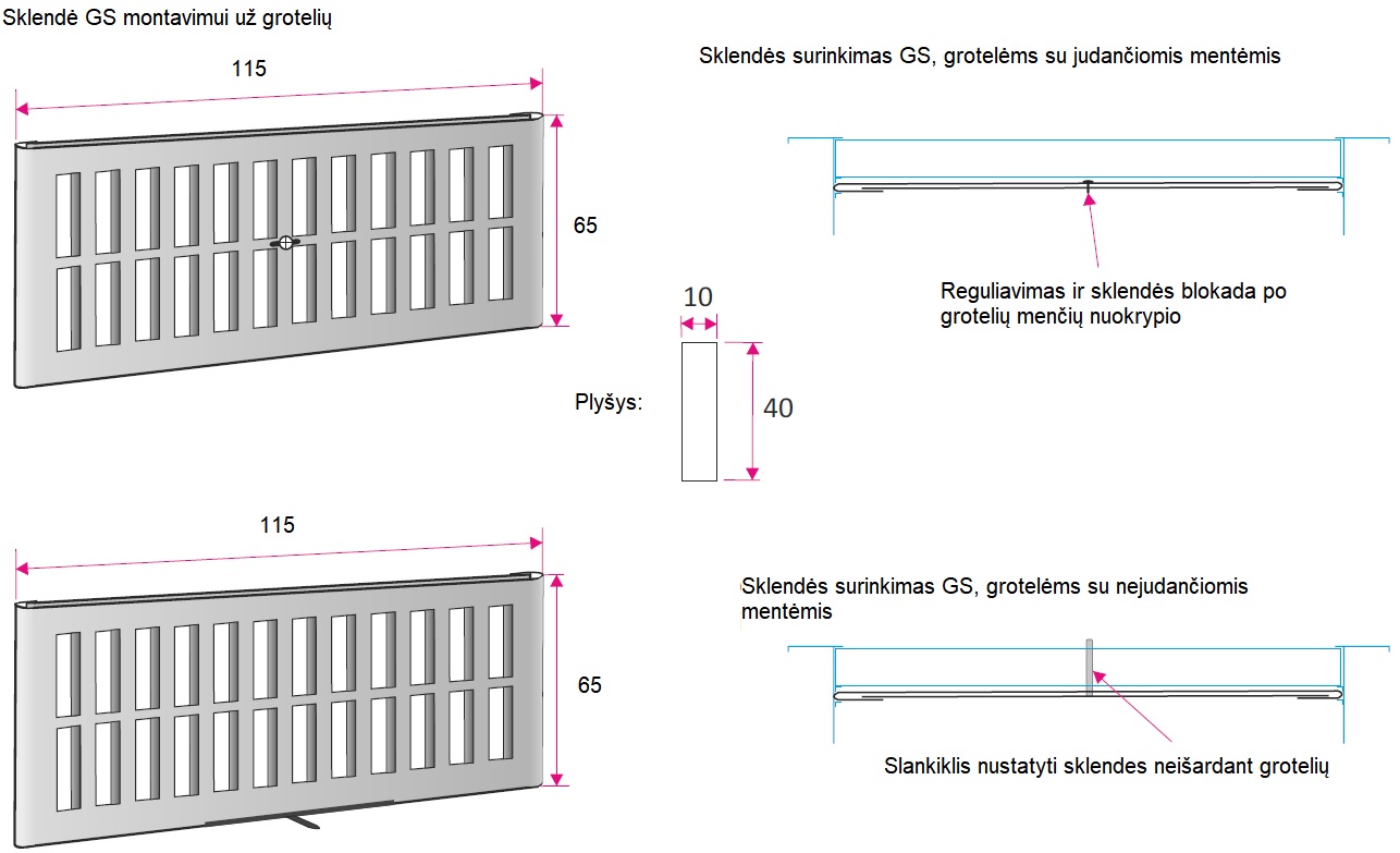 GS/1025x75 Montavimo angos matmenys 1025x75 mm, sklendės matmenys 1015x65 mm
